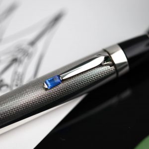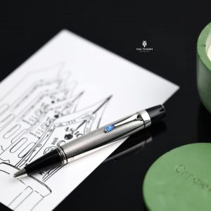 Bút bi Montblanc Boheme Bleu – 925 Sterling Silver thuộc phân khúc cao cấp của dòng Boheme, với thiết kế nhỏ gọn phù hợp với những doanh nhân, lãnh đạo hay phải họp hành công tác. Điển đặc biệt của cây bút chính là chất liệu làm nên, toàn thân được làm bằng bạc khối AG 925( có triện khắc trên nắp) khắc các họa tiết Barleycorn tựa các gợn sóng, phần cài áo có gắn 1 viên đá saphia xanh nhạt tạo nên điểm nhấn của cây bút.